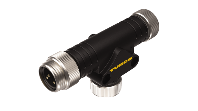 TURCK's A-Size Powerfast Tees are now available in 3- or 4-pin offerings for both standard and alternate keyway options. The tees come with both integral connector and cabled extension offerings to be able to fit into any application. These products are rated IP67, IP68 and NEMA 1, 3,4 and 6P. This overmolded solution is in the process of obtaining the UL2237 listing for both standard and alternate keyway options.