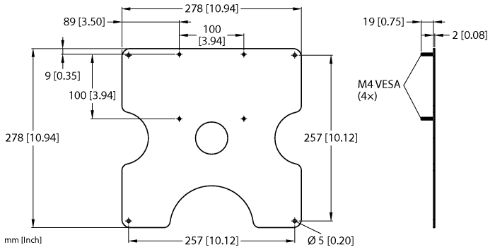 • Mounting bracket with VESA100 pins for TN-UHF-ANT-Q280… antenna