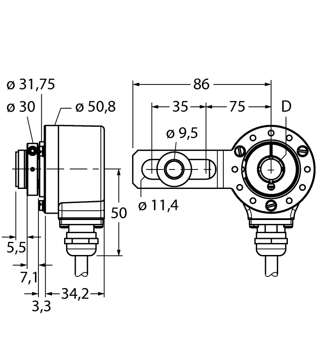 | Flange type | Flange with mounting element |