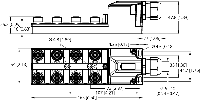 Passive actuator/sensor junction box, 8 ports