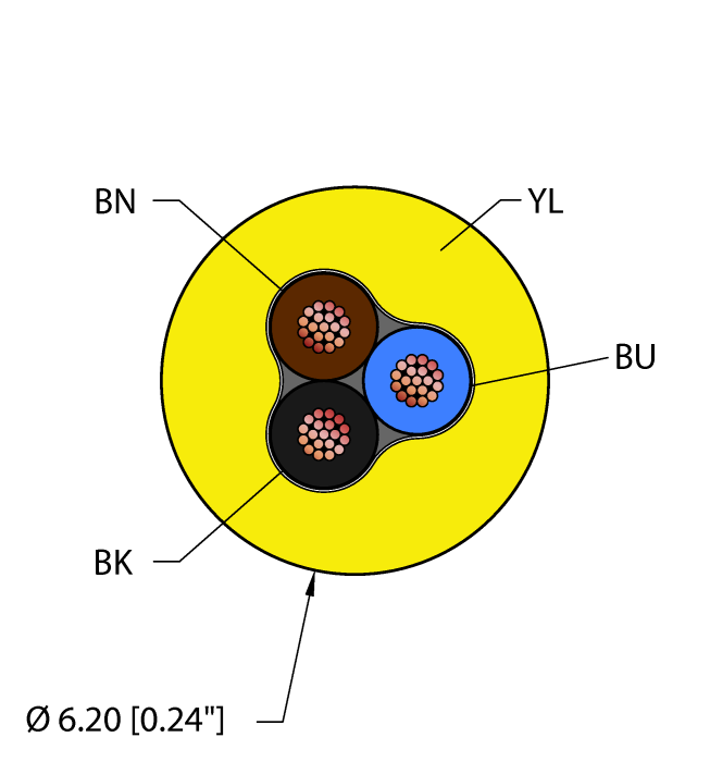 - Yellow PVC jacket, 3X18 AWG
