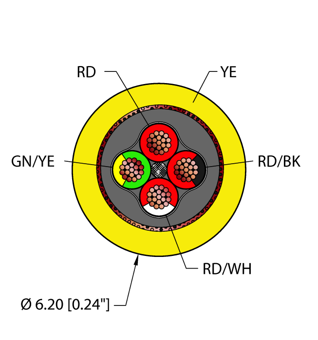 - Yellow PVC jacket, shielded, 4X22 AWG
