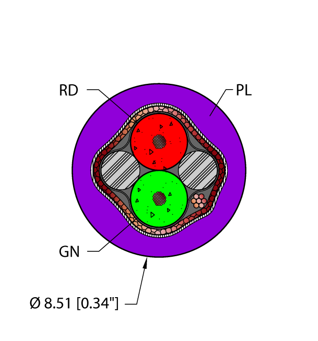 - fieldbus type: PROFIBUS-DP, TPU jacket,Plum, shielded, 2X22 AWG