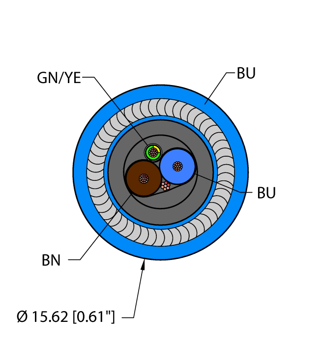 - fieldbus type: FOUNDATION™ fieldbus, Blue PVC jacket, cable armor: IAA, 1STPDX18+1X18 AWG