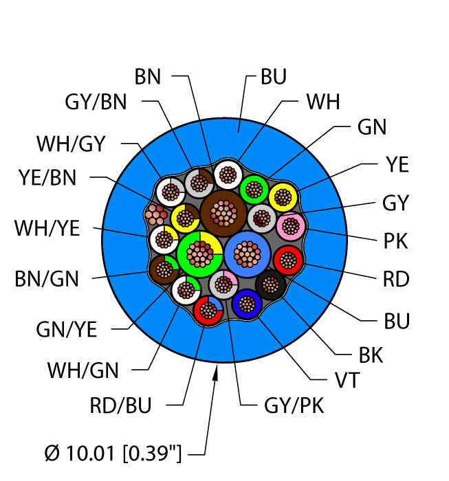 - Blue PVC jacket, shielded, 3X18+16X22 AWG