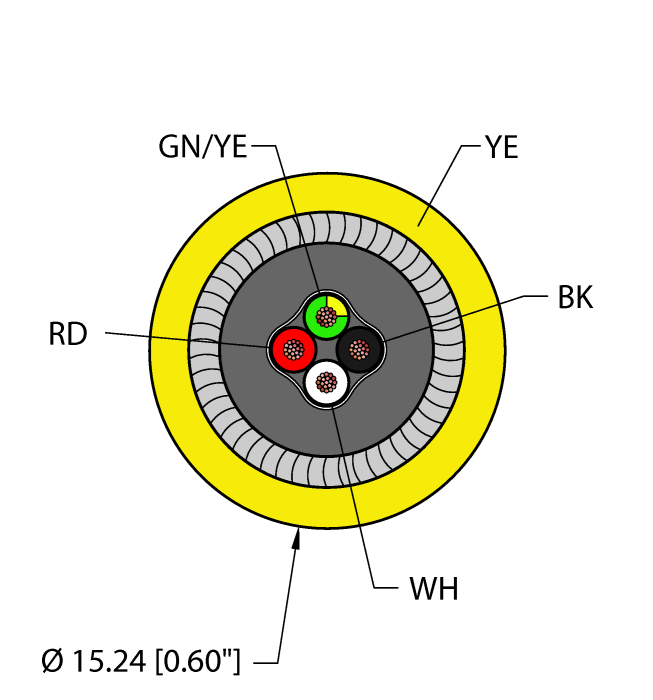 - Yellow PVC jacket, cable armor: IAA, 4X18 AWG