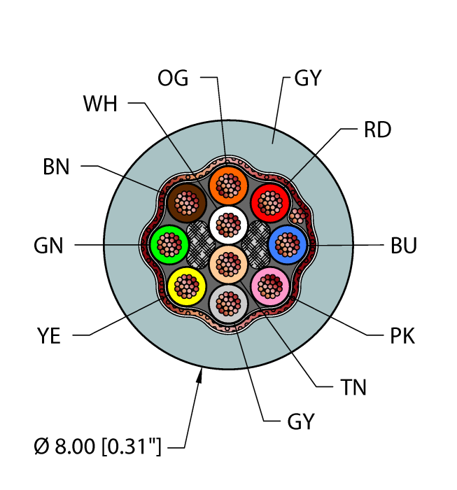 - Gray PVC jacket, shielded, 10X22 AWG