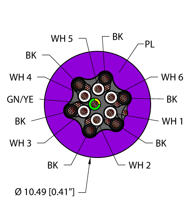 - Plum PVC jacket, shielded, 6STPDX22+1X18 AWG