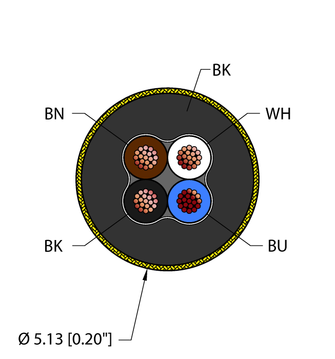 | Conductor size | 22 AWG [Similar to 0.34 mm²] |