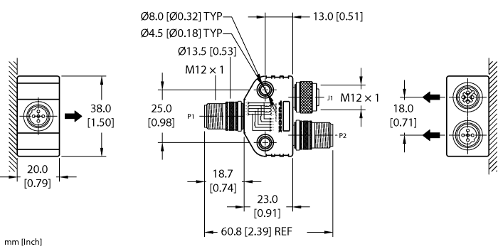 | Connector B | Female, M12 × 1, B-code |