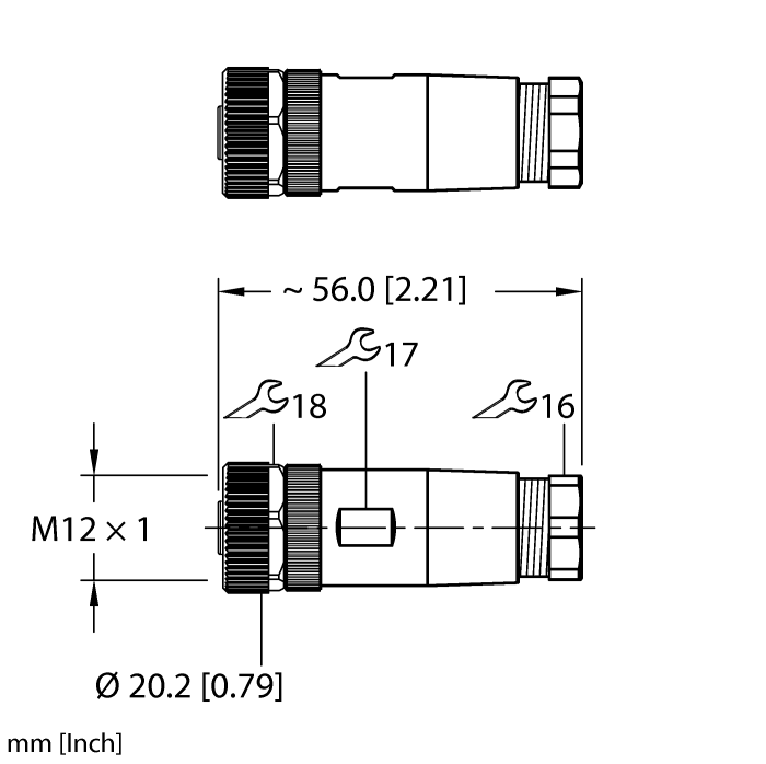 | Connector A | Female, M12 × 1, Straight, A-code |